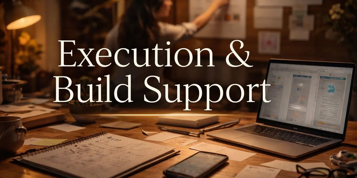 Execution support is for creators and entrepreneurs who already have something in motion and need help bringing it across the finish line. You may arrive with a draft, a half-built product, scattered assets, or a clear idea that hasn’t been executed yet.
